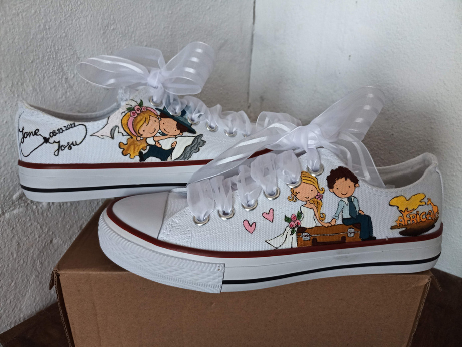 Trabajos de pintura en tejidos, sobre todo zapatillas de lona. Tu compárteme tu idea y diseñaremos un regalo totalmente original y único. Todo al servicio de la creatividad consciente y por las cosas hechas con amor.